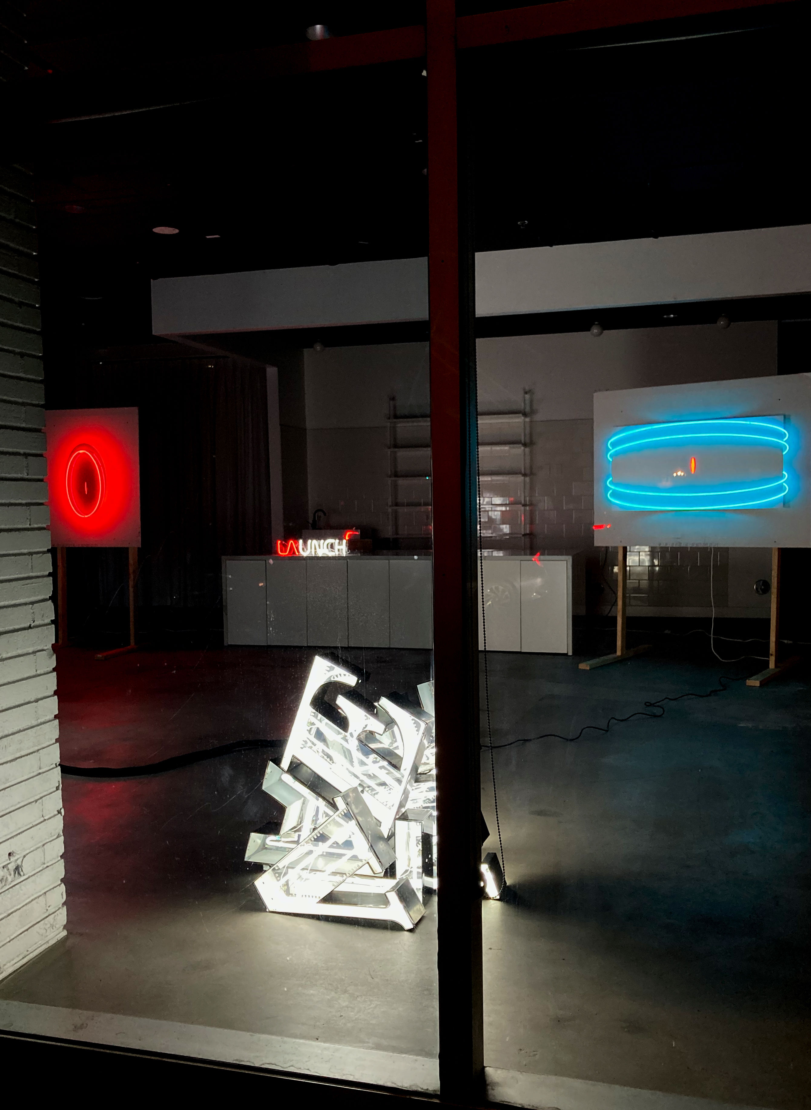 LAUNCH LA is proud to present La Cienega & West Third, a neon light exhibition by local artists Donna Gough and David Otis Johnson. These artists illuminate this intersection of commerce and culture through neon art. Using techniques that dazzled the world since the early 21st century, these contemporary artists use the allure of light coupled with vivid color to move beyond drawing attention and commercialization to give us astute and enticing commentary on present day life. From abstraction to 3D objects to text, these artists use this former tool of branding and sales to redirect our gaze and present a deeper message.